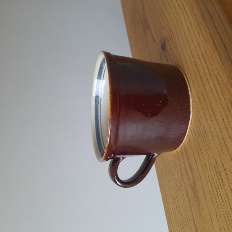 Lesklý hnědý kameninový hrnek o objemu 0,6 l. Výška hrnku 9 cm. Průměr 12,5 cm.