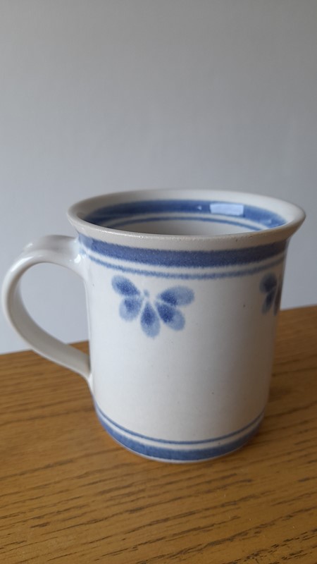 Modře zdobený kameninový hrnek o objemu 0,3 l. S lesklou glazurou. Podšálek můžete koupit zde.