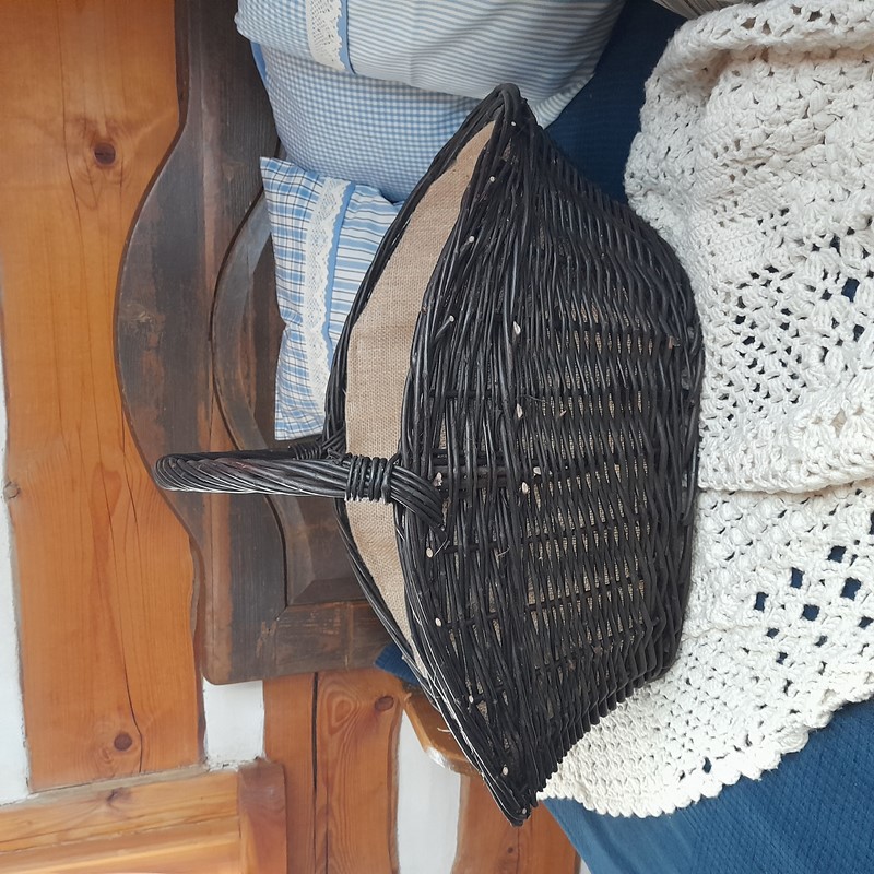 Tmavě hnědý proutěný koš na dřevo. Uvnitř s praktickou jutou.