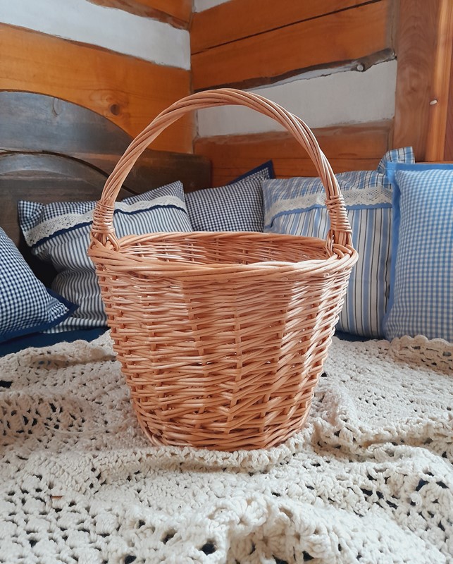Světlý proutěný koš s uchem. Z vrbového proutí v přírodním provedení.