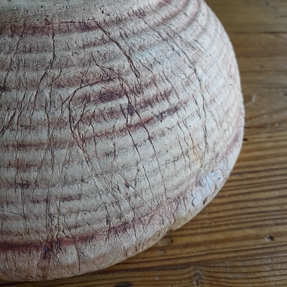 Ručně vyráběná miska určená k pěstování květin. Vespodu jsou 4 dírky pro odtok vody. Zvenku v přírodním surovém provedení. Vevnitř je miska glazovaná lesklou glazurou v přírodních tónech.