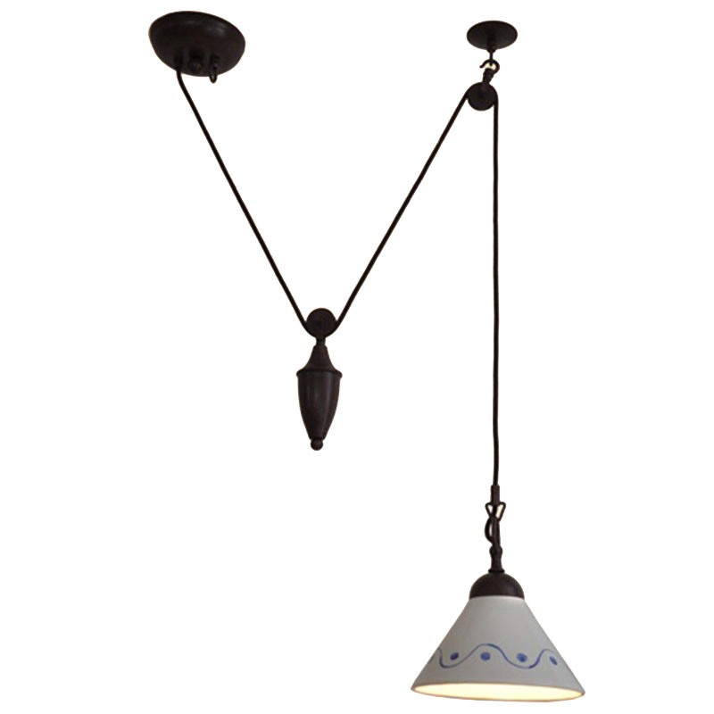 Stínítko světla je keramické plné bez prolisů. Průměr činí 20 cm, výška 12 cm. Závaží stahovacího světla je kovové. Jak na stínítko lze po domluvě a příplatku nechat namalovat různé linky, kytičky, tečky, apod.. Inspiraci najdete v našem vzorníku.