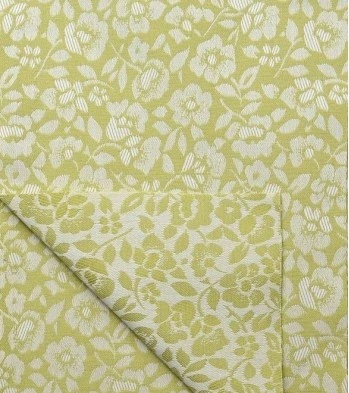 Oboustranný vzor romantických květin ve světle zelené barvě. Jedná se o látku tkanou na žakárových stavech, kde vzor je vytkán různými vazbami. Dekorační látky jsou vyrobeny z vysoce kvalitních skaných, nezávadně barvených, stálobarevných přízí 100 % bavlny. Metráž je nebělená, mercerovaná a sanforizovaná (vysrážená - zbytková srážlivost do 3%). Žakárové tkaniny jsou látky s vytkanými vzory, které jsou na rubu v negativním provedení. Pouhým otočením můžete změnit vzhled interiéru. Tyto látky lze libovolně kombinovat s našimi kanafasy, hodí se na závěsy, ubrusy, prostírky, polštářky, zástěry, chňapky atd. Bytové doplňky z těchto látek ve venkovském stylu se budou hodit jako dekorace nejen na chalupu, ale i do moderních interiérů.