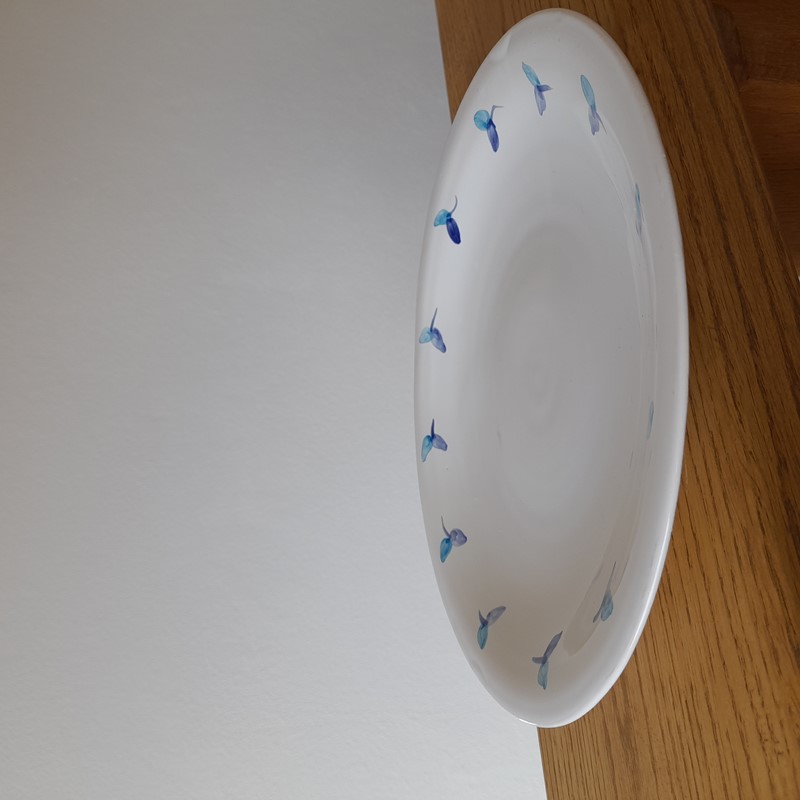 Mělký talíř zdobený lístečky. Průměr 25 cm.