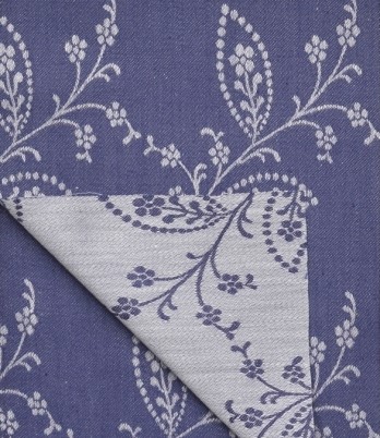 Oboustranný vzor folklorního kvítí v tmavě modré barvě. Jedná se o látku tkanou na žakárových stavech, kde vzor je vytkán různými vazbami. Dekorační látky jsou vyrobeny z vysoce kvalitních skaných, nezávadně barvených, stálobarevných přízí 100 % bavlny. Metráž je nebělená, mercerovaná a sanforizovaná (vysrážená - zbytková srážlivost do 3%). Žakárové tkaniny jsou látky s vytkanými vzory, které jsou na rubu v negativním provedení. Pouhým otočením můžete změnit vzhled interiéru. Tyto látky lze libovolně kombinovat s našimi kanafasy, hodí se na závěsy, ubrusy, prostírky, polštářky, zástěry, chňapky atd. Bytové doplňky z těchto látek ve venkovském stylu se budou hodit jako dekorace nejen na chalupu, ale i do moderních interiérů.