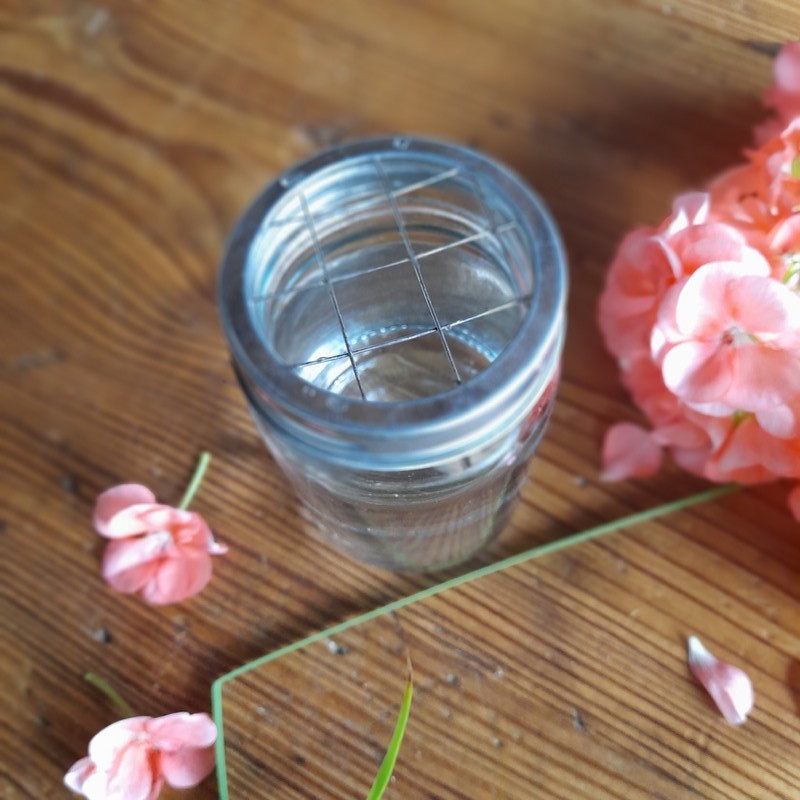 Skleněná váza se šroubovacím kovovým víčkem. Víčko je opatřeno mřížkou pro jednoduché vytvoření květinových aranžmá. Vaše květiny se díky němu již nikdy nebudou nevzhledně opírat o kraj vázy.