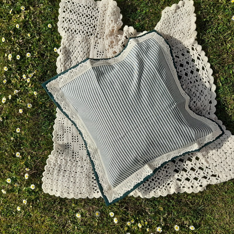Polštářek obšitý krajkou - tm. zelený (pruhy malé)Skladem 2 ks420 Kč/ ks