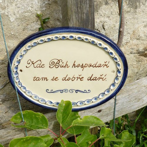 Ručně malovaná keramická cedulka domácího požehnání. Mnozí z nás si jej pamatujeme z domácností našich praprarodičů či prarodičů se nyní hojně vrací do našich domácností. Přináší domů klid starých dobrých časů. Tradičně se dávala nad dveře domu, do světnice nad dveře, do kredencí apod..