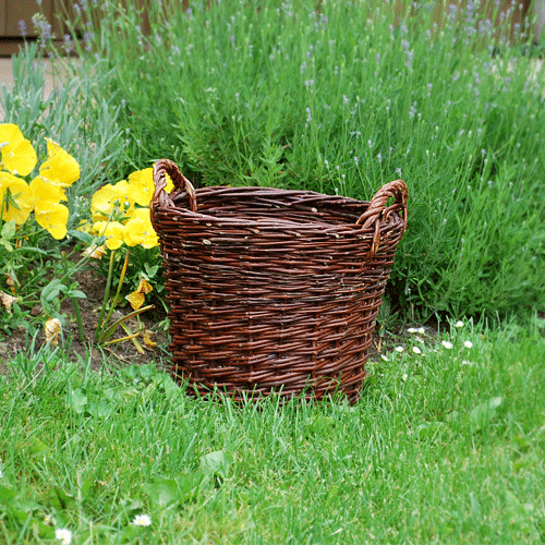 Tmavý proutěný koš o průměru 30 cm. Výška po uši 27 cm. Průměr dna koše je 20 cm. Košík je vhodný na uskladnění potravin, např.: brambor. Nebo poslouží jako stylový obal na květináč či jako dekorace.